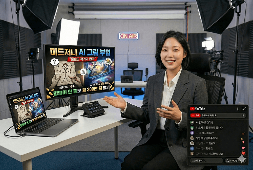 과거에는 그림으로 돈을 벌려면 수십 년의 수련이 필요했습니다. 하지만 미드저니(Midjourney)의 등장으로 판도가 바뀌었습니다. 단 몇 줄의 명령어(프롬프트)만 있으면, 전문 일러스트레이터가 일주일 걸려 그릴 그림을 단 1분 만에 완성할 수 있습니다.