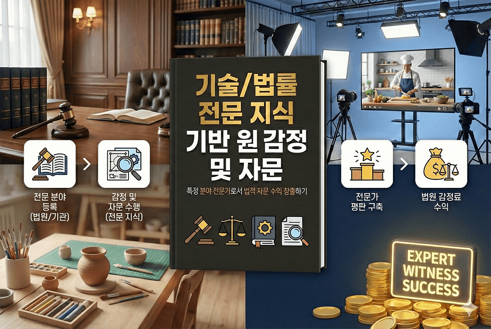 본인의 전문 기술(IT, 건축, 디자인 등)을 바탕으로 법원 감정인이나 기술 자문으로 등록되어 고액의 자문료를 받는 법입니다.