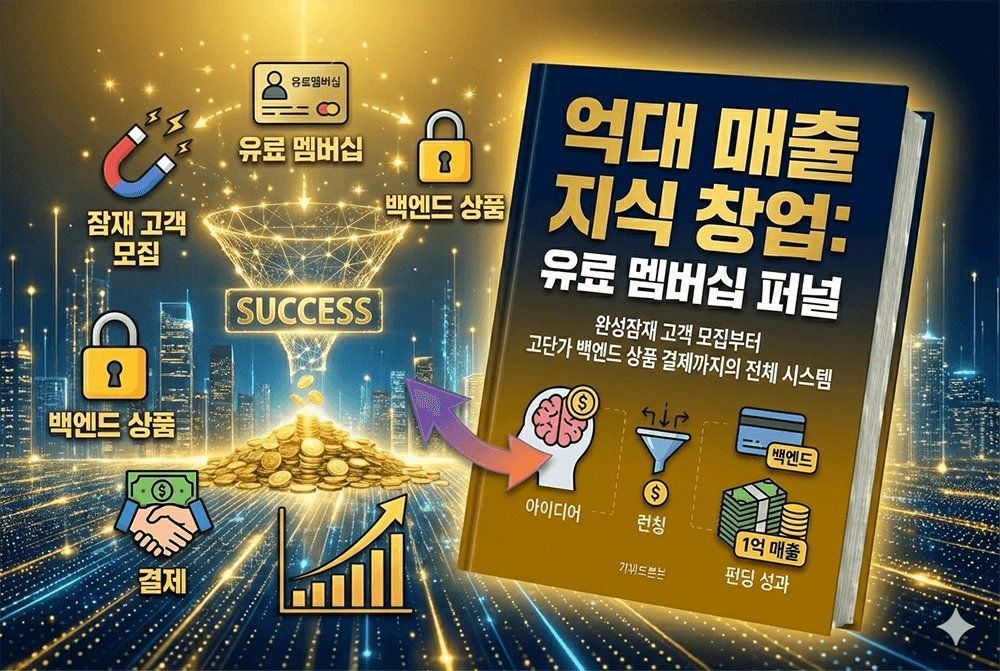 단순 전자책 판매를 넘어 월 구독료를 받는 멤버십과 고액 컨설팅으로 이어지는 수익 깔때기를 완성합니다.